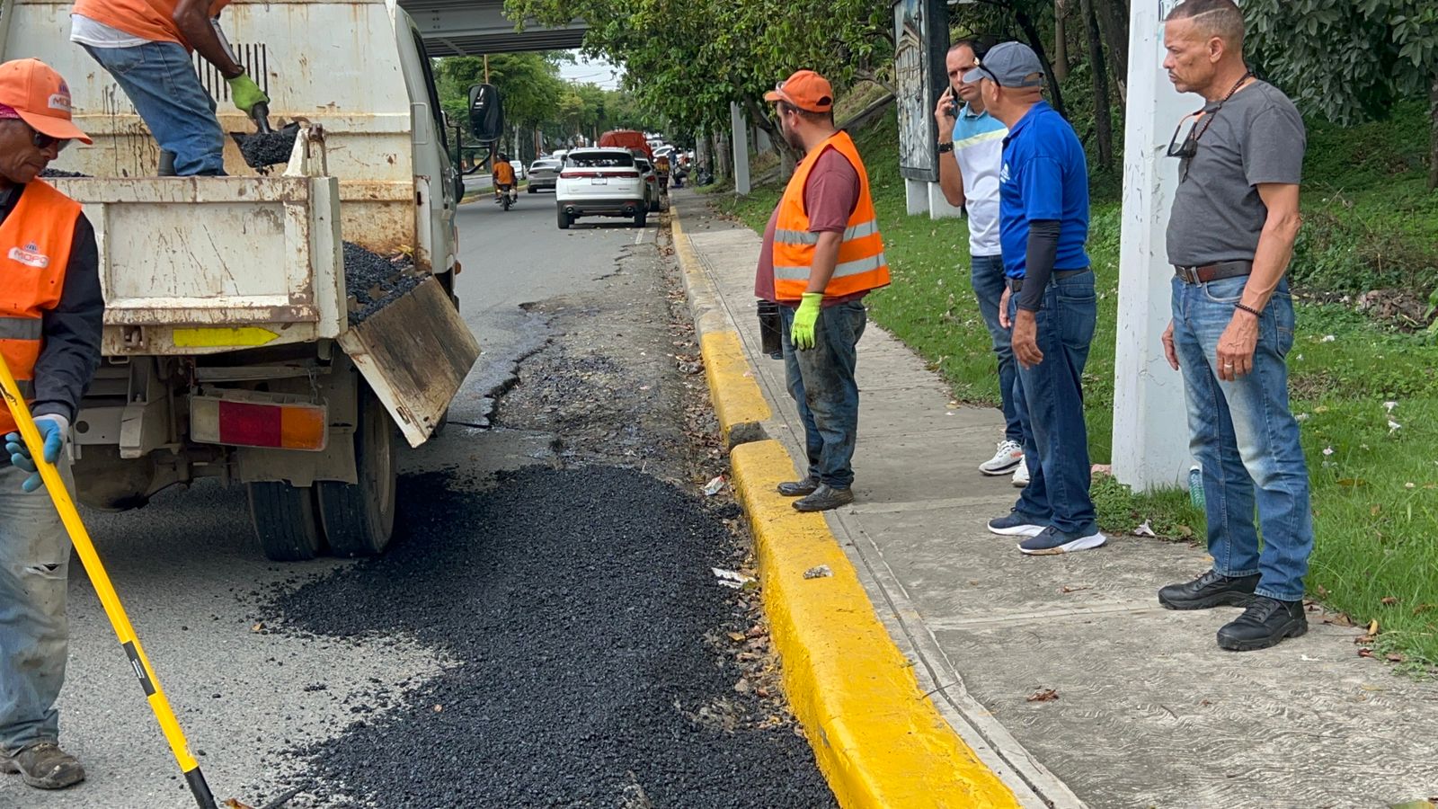 César Emmanuel Cerda informa que la pavimentación se lleva a cabo con la colaboración del Ministerio de Obras Públicas y Comunicaciones (MOPC), junto al alcalde por el municipio de Bonao Eberto Núñez, el regidor Odalis González y el encargado de las brigadas Tom Moore.